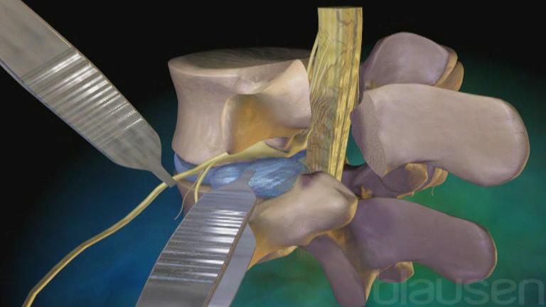 Dieser Druck auf den verletzten Nerv und das Rückenmark kann durch ein chirurgisches Verfahren gelindert werden, das als lumbale Laminektomie bezeichnet wird. Während einer lumbalen Laminektomie wird ein kleiner Einschnitt in die Haut entlang der Lendenwirbel vorgenommen. Die Muskeln werden auseinandergeschoben und der Knochen wird freigelegt. Die Laminae (Bogenplatten) der Wirbel werden langsam und sorgfältig entfernt, was den Druck vom eingeklemmten Nerv und vom Rückenmark nimmt. Der Nerv wird dann vorsichtig auf die Seite geschoben und der hervorgebrochene Anteil der Bandscheibe entfernt. Auf den Nerv werden nun kein Druck und keine Schmerzen mehr ausgeübt. Die Muskeln werden zurück an Ihren Platz gebracht und der Einschnitt wird verschlossen.