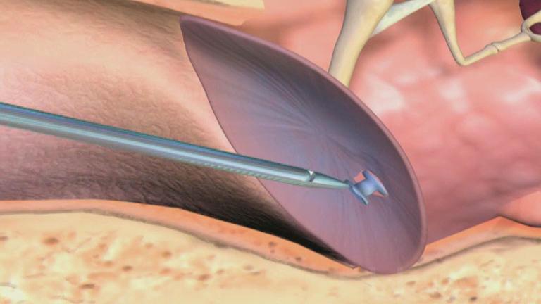Au cours de cette intervention, la membrane tympanique est légèrement incisée pour que le liquide accumulé s’écoule. Un petit drain est alors inséré dans l’incision pour permettre un écoulement continu pendant quelques mois. Au bout d’un certain moment, l’incision commence à cicatriser et les drains tombent naturellement lorsque le trou du tympan se referme.