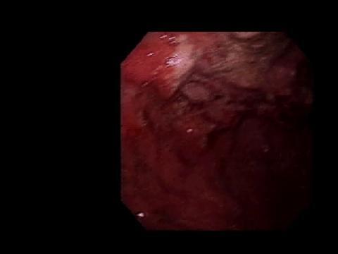 Для осмотра желудка используется эндоскопия. В этом видео крупное новообразование неправильной формы — это рак. В конце этого видеоматериала можно увидеть нормальные складки слизистой оболочки желудка (желудочные складки).