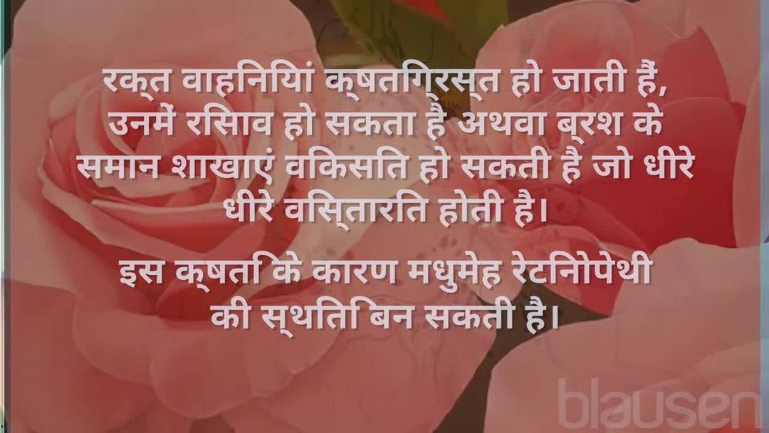 डायबिटीज से पीड़ित व्यक्ति की रक्त वाहिकाओं में क्षति हो सकती है जिनसे रेटिना को पोषण मिलता है। जब रेटिना की रक्त वाहिकाएँ क्षतिग्रस्त हो जाती है, तो उनमें से रिसाव हो सकता है, उनमें सूजन सकती है या उनमें ब्रश की तरह शाखाएँ और एक्सटेंशन विकसित हो सकते हैं। इस क्षति से डायबिटिक रेटिनोपैथी हो सकती है।