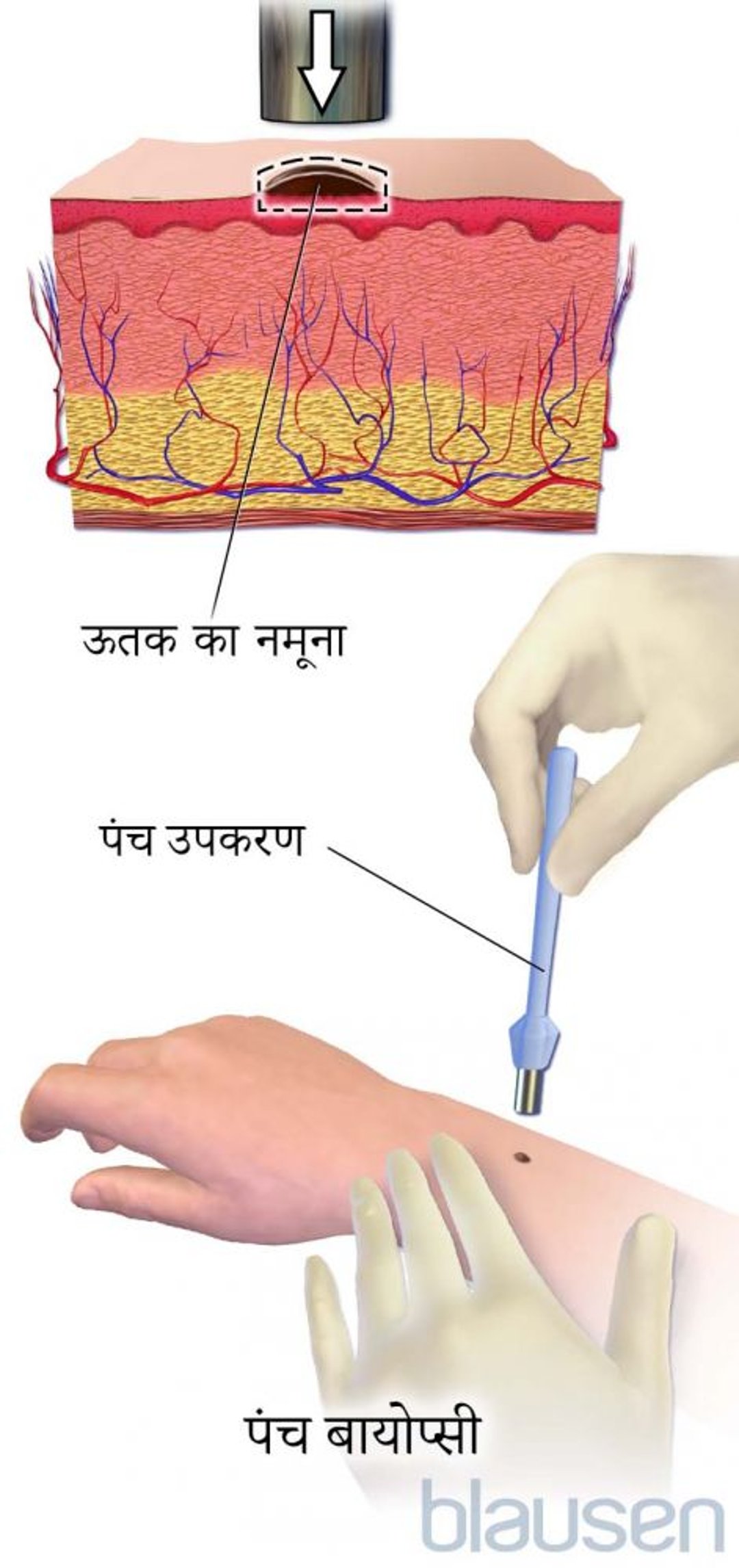 कभी-कभी बायोप्सी करना ज़रूरी होता है, जिसमें त्वचा का एक छोटा-सा टुकड़ा निकालकर, उसे माइक्रोस्कोप के नीचे जांचा जाता है।