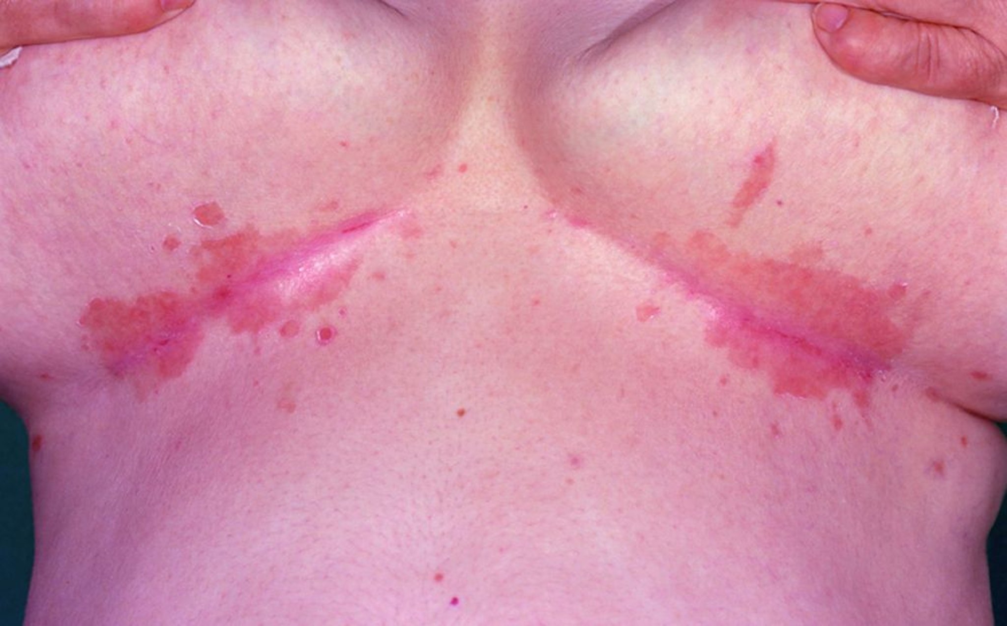 Intertrigo terjadi ketika kombinasi gesekan dan kelembapan yang terperangkap melembutkan dan mengiritasi kulit dan menyebabkannya pecah. Kulit pecah ini sering menyebabkan infeksi oleh ragi atau bakteri. Area yang terkena berwarna merah, iritasi, gatal, atau kombinasi.