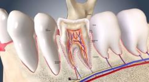Pembuluh darah dan saraf memasuki ruang pulpa melalui saluran akar, yang juga dikelilingi oleh dentin. Di dalam akar, dentin ditutupi oleh sementum, zat tipis seperti tulang Sementum dikelilingi oleh membran (ligamen periodontal) yang menyangga gigi dan melekatkan lapisan sementum, dengan demikian seluruh gigi, melekat dengan kuat ke tulang rahang.