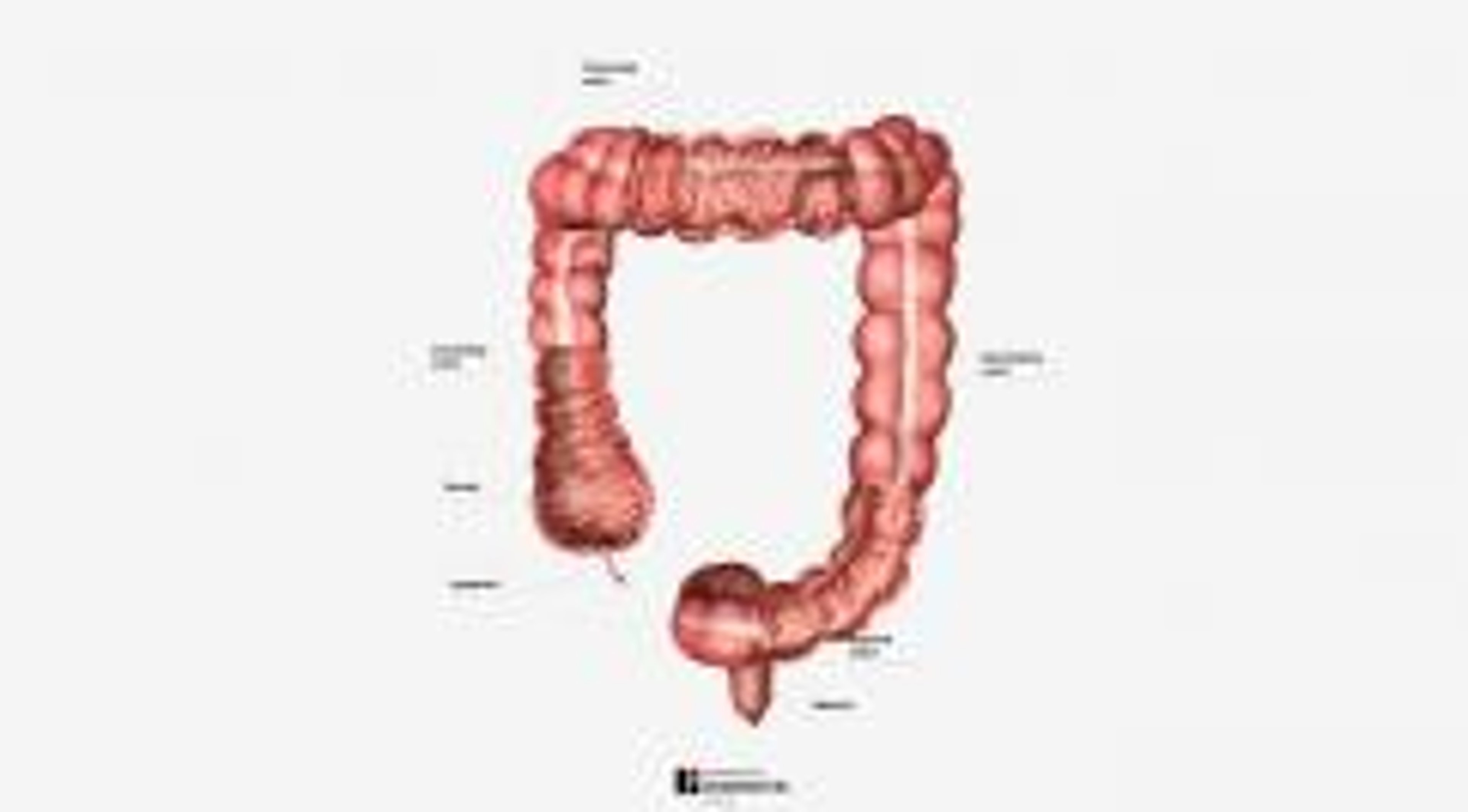 Sekum, yang berada di awal kolon yang menaik, adalah titik di mana usus kecil bergabung dengan usus besar. Yang menonjol dari sekum adalah usus buntu, yaitu tabung kecil berbentuk jari yang tidak memiliki fungsi yang diketahui. Usus besar mensekresikan mukus dan sebagian besar bertanggung jawab atas penyerapan air dari feses.