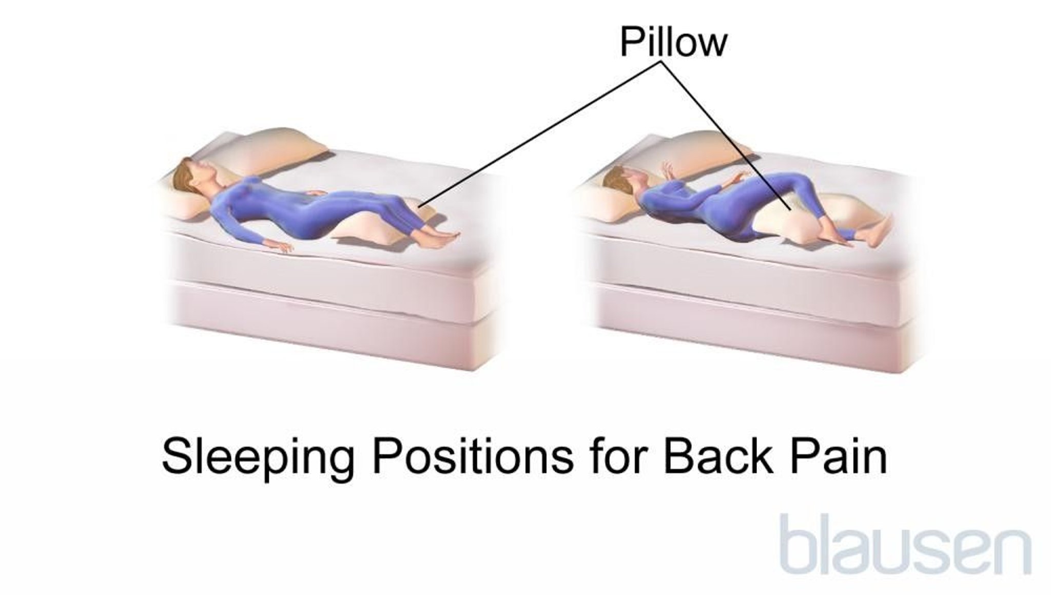 Disarankan untuk tidur dalam posisi yang nyaman pada matras sedang. Orang yang tidur telentang dapat menaruh bantal di bawah lutut mereka. Orang yang tidur miring sebaiknya menggunakan bantal untuk menyangga kepala dalam posisi netral (tidak miring ke bawah ke arah tempat tidur atau ke atas ke arah langit-langit). Tempatkan bantal lain di antara lutut dengan pinggul dan lutut sedikit ditekuk jika hal itu dapat meredakan nyeri punggung. Boleh tidur tengkurap terus jika merasa nyaman.