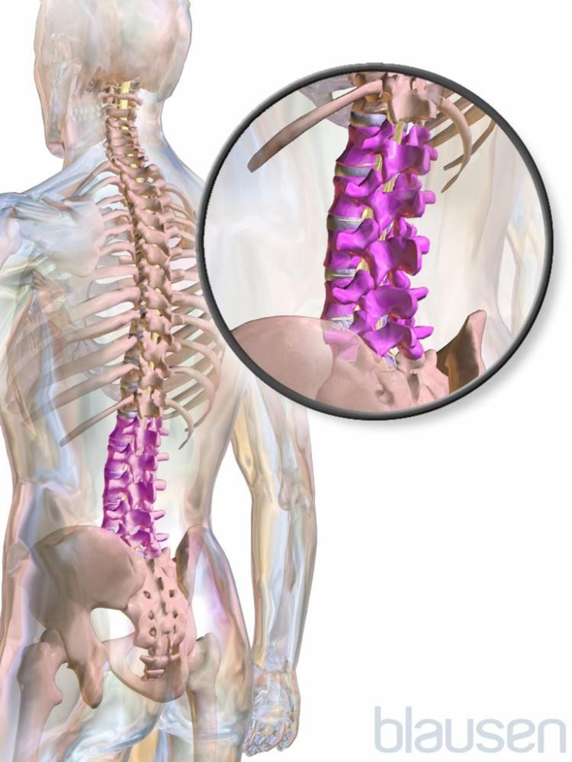 Tulang belakang bawah (tulang belakang lumbal) terhubung ke tulang belakang di punggung atas (tulang belakang toraks) di atas dan ke pinggul melalui sakrum di bawah. Sakrum adalah tulang segitiga besar di dasar tulang belakang, bagian bawahnya adalah tulang ekor. Tulang belakang lumbal bersifat fleksibel sehingga memungkinkan gerakan berbelok, memutar, dan membungkuk, serta memberikan kekuatan—untuk berdiri, berjalan, dan mengangkat. Dengan demikian, punggung bawah terlibat dalam hampir semua aktivitas kehidupan sehari-hari. Nyeri punggung bawah dapat membatasi banyak aktivitas dan mengurangi kualitas hidup.