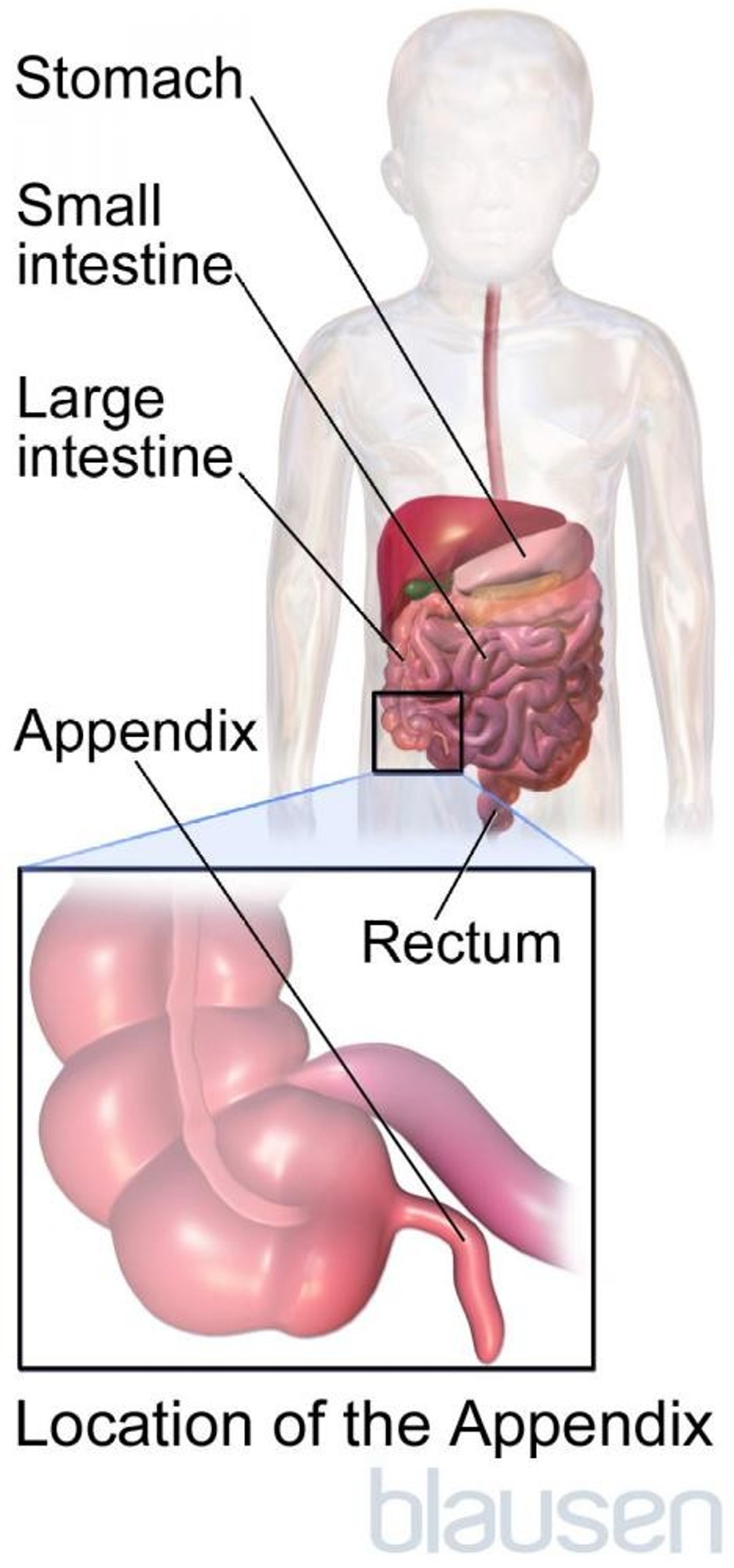 Apendiks adalah jaringan berbentuk tabung kecil yang merupakan bagian dari usus. Panjangnya kurang lebih serupa jari tangan dan terletak di dekat tempat berakhirnya usus halus dan dimulainya usus besar. Apendiks tampaknya tidak memiliki fungsi tubuh yang penting.