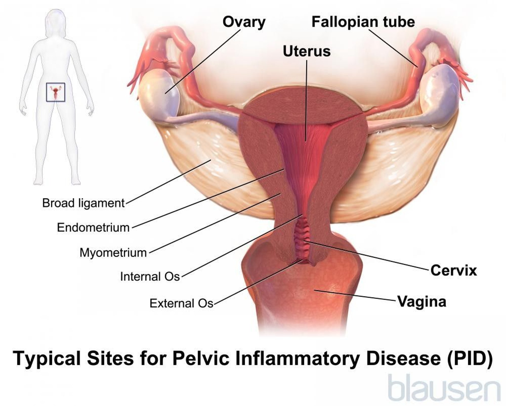 • Biasanya, wanita mengalami nyeri di perut bagian bawah, keputihan abnormal, dan terkadang demam atau perdarahan vagina yang tidak teratur.