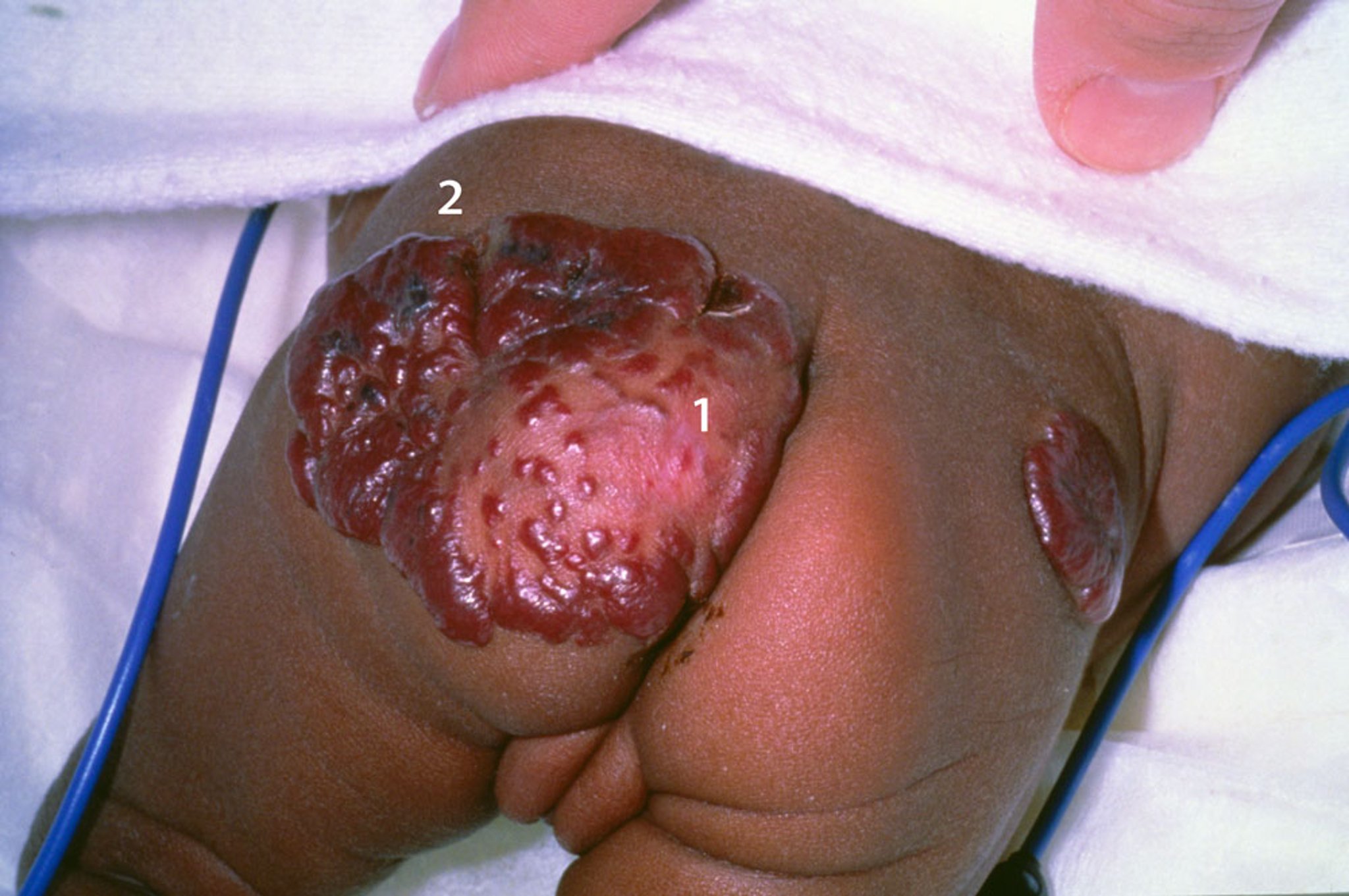 新生児の顔や頭皮に皮下出血などがみられることがありますが、これは産道を通る際にかかる圧力や、鉗子または吸引器の使用によって生じる場合があります。骨盤位分娩(逆子)での出生後には、脚と足に皮下出血が起こることがあります。 これらの皮下出血は通常、数日で治ります。