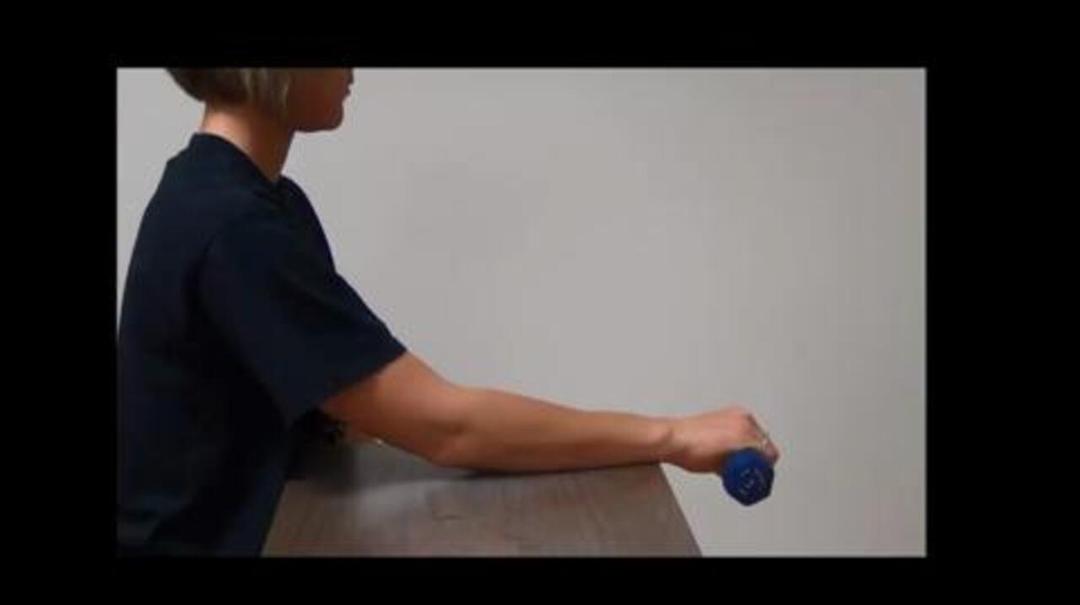 1. Place forearm on table with the hand palm down, off the edge of the table.