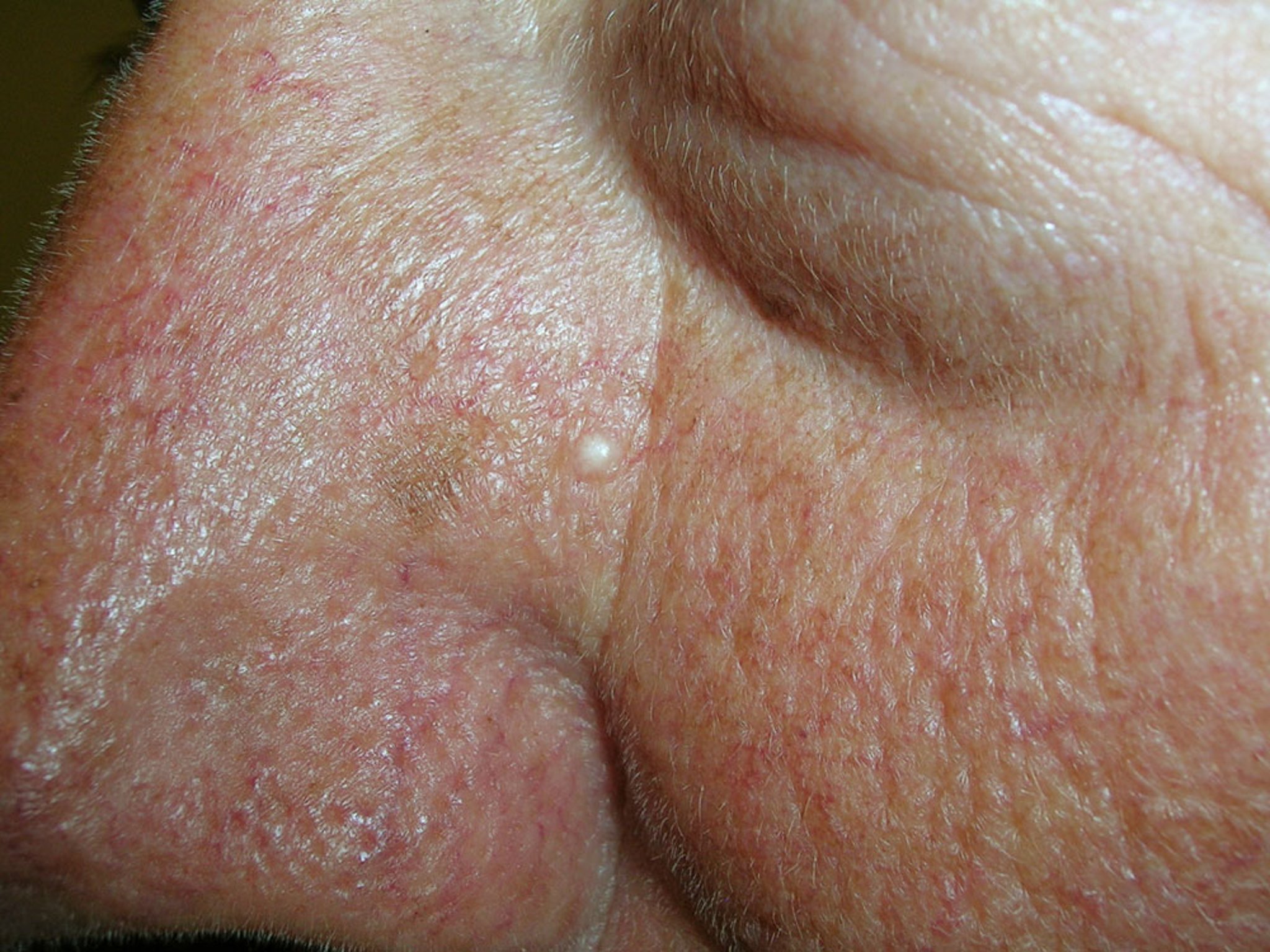 Milia are minute superficial epidermal inclusion cysts that are most often on the face and scalp.
